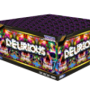 This mixed shape compound / sib starts with big bursts of gold brocade crown alternating with green glitter and purple stars. A W-shaped volley of gold tails to gold kamuro with silver strobe tips follows. Pulse firing gold brocades to red plum, more W firing and then a fanned volley crackling brocade palms. Delirious then steps up the pace with a Z-firing fan of brocades and glittering stars before a stunning V-firing formation of gold crackling come tails with huge bursts of green and blue dahlia to red ghost/plum in between. A finale fanned volley finishes this cake to perfection.