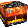 Thunderbolt 3 starts with a double burst of pink and lime green with gold strobe, lime green and blue with red strobe and then lime green and pink again before a fanned section of red and blue with wintersweet. A return of the same effects at the start of this cake are followed by another fan of lemon and blue to red ghost. I thought this next section was the finale as several gold tails rose to gold brocades with blue, but there was still more to come…. A fanned volley of brocade with single pink dahlia core and a second volley of brocade to crackling.